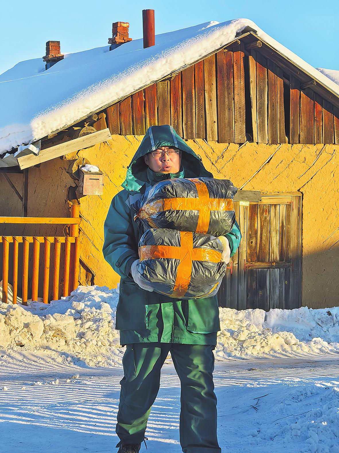 時(shí)下正是黑龍江省漠河市北極村的旅游高峰期,北極村內(nèi)“最北郵局”的投遞員王秀瓏也迎來(lái)了自己的投遞旺季。當(dāng)?shù)囟練鉁氐?,路面上的冰雪很難消融。為了將郵件盡快送達(dá),他一般會(huì)選擇步行或者用小推車運(yùn)送郵件。郵件投遞高峰期,王秀瓏忙得連飯都顧不上吃。但他說(shuō):“客戶早一點(diǎn)兒拿到郵件,我也早一點(diǎn)兒安心?!薄鯊埡閺?qiáng) 攝影報(bào)道