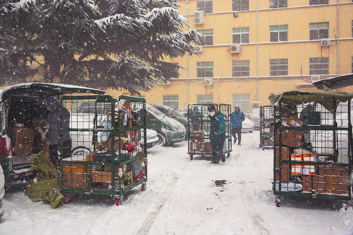 近期,寧夏回族自治區(qū)固原市普降大雪,郵政人頂風(fēng)冒雪卸車、搬運(yùn)郵件,保障所有郵件及時(shí)送達(dá)客戶手中?!蹶慄h?!z影報(bào)道