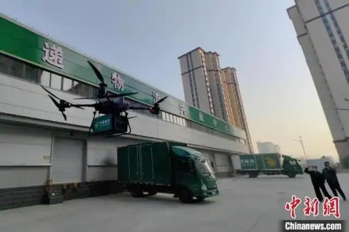 1月3日上午,一架無人機“郵遞員”滿載郵政快遞,從河南省安陽市林州郵政寄遞物流共配中心起飛,20分鐘后降落在林州石板巖鎮(zhèn)中心廣場。這是安陽市首次開展山區(qū)無人機郵政快遞航線測試飛行。