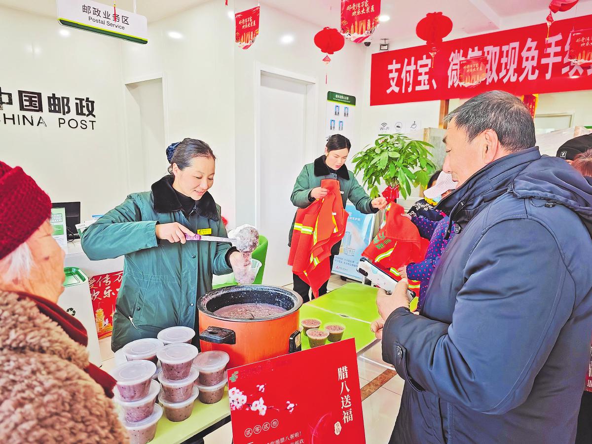 1月7日一早,江蘇省灌南縣郵政分公司九隊(duì)支局聯(lián)合當(dāng)?shù)丨h(huán)衛(wèi)部門舉辦“情暖臘八,‘郵’愛你我”活動(dòng)。該支局精心熬制了臘八粥,邀請(qǐng)新老客戶和環(huán)衛(wèi)工人免費(fèi)品嘗,并為環(huán)衛(wèi)工人贈(zèng)送專屬愛心馬甲,共同感受傳統(tǒng)節(jié)日的喜慶氛圍。同時(shí),支局工作人員還現(xiàn)場(chǎng)講解郵政金融知識(shí),開展反詐宣傳,增進(jìn)了與客戶的交流。
