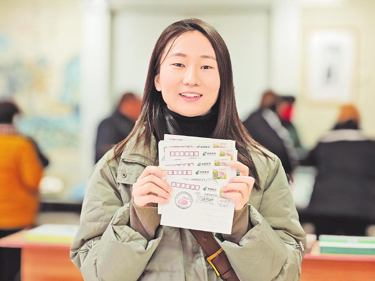 河南省南陽市郵政分公司多個(gè)網(wǎng)點(diǎn)聯(lián)動(dòng)開展生肖蛇票發(fā)行活動(dòng),啟用《乙巳年》特種郵票發(fā)行紀(jì)念戳和蟒泉臨時(shí)郵局紀(jì)念戳,免費(fèi)為廣大集郵愛好者加蓋。在南陽市仲景路集郵專賣店,郵迷捧著加蓋郵戳的紀(jì)念封欲寄給親朋好友,傳遞新年祝福。□劉力揚(yáng) 攝