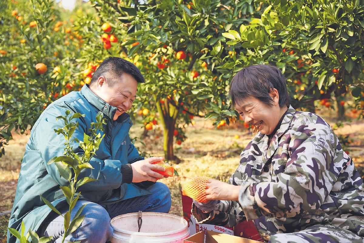 漫步柑橘林,濃濃果香撲面而來(lái),一個(gè)個(gè)色澤金黃、圓潤(rùn)飽滿的柑橘點(diǎn)綴其間?!澳憧?,這25畝柑橘都是我家種的,今年預(yù)計(jì)產(chǎn)量有4萬(wàn)多公斤,收入能在30萬(wàn)元左右?!崩畲溆⒄f(shuō)著話,將一筐柑橘搬上電動(dòng)三輪車。
