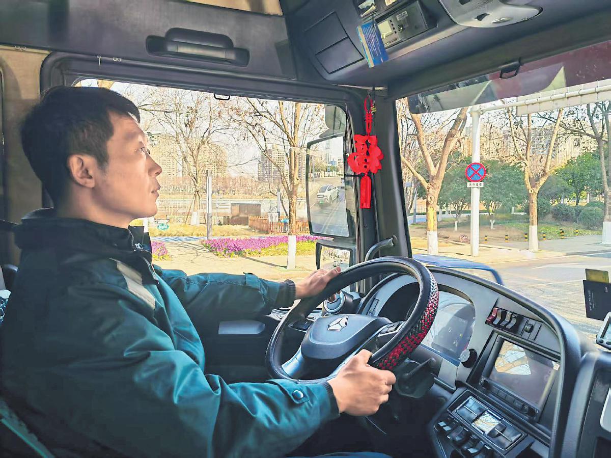 在忙碌中,陳文海會(huì)不時(shí)掃視一眼掛在駕駛室左側(cè)的“平安?!保@是家人送給他的。“平安?!睅?lái)了年味,也寄托著他70多歲的父母、勤勞持家的妻子、就讀高三的女兒的牽掛,提醒著他注意安全和保重身體。