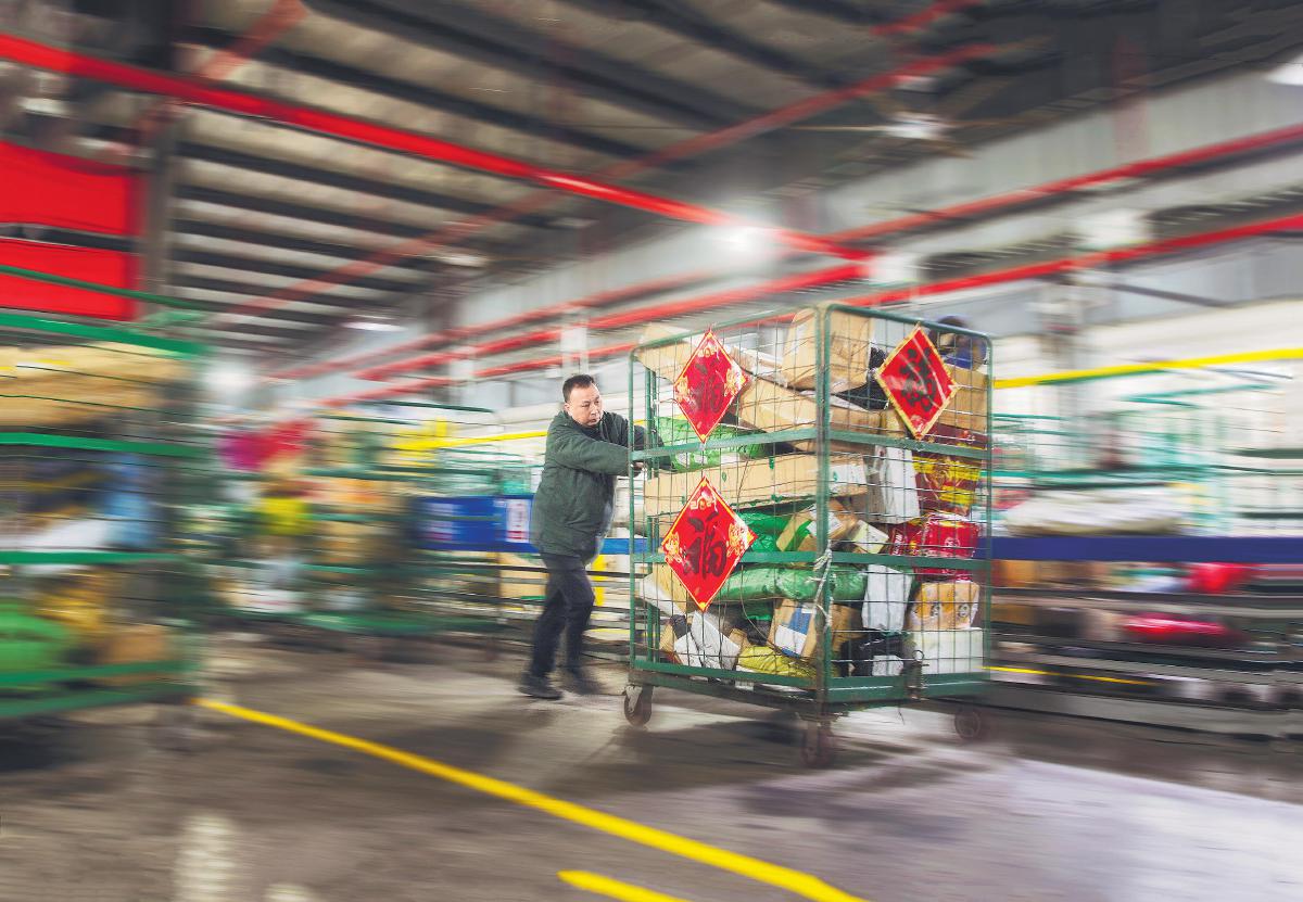 1月27日,江蘇常州郵區(qū)中心員工忙碌有序地處理郵件。該中心春節(jié)期間將全力保障郵件處理?!鯀敲簟z