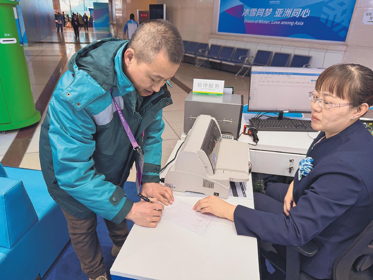 自2月1日起,為服務(wù)好第九屆亞冬會(huì),黑龍江省哈爾濱市郵政分公司精心組織、周密部署,抽調(diào)10名投遞人員、10輛郵車(chē),細(xì)致規(guī)劃投遞段道,全面承擔(dān)起亞冬會(huì)比賽場(chǎng)所進(jìn)口郵件投遞和3個(gè)主題郵局出口郵件歸集工作,確保每日投遞頻次,郵政服務(wù)不間斷。圖為投遞人員在主題郵局交接郵件。