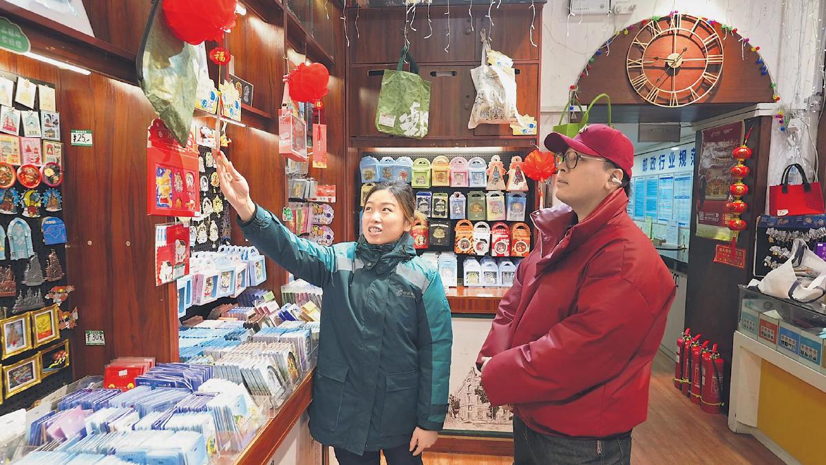 “元宵佳節(jié)月兒圓,全家團聚樂翻天(打一成語)”“亞冬會的冰雪項目中,哪個需要在賽道上設(shè)置旗門(打一運動項目)”……主題郵局內(nèi)張燈結(jié)彩,一串串紅燈籠下懸掛著一條條燈謎。燈謎的內(nèi)容豐富多樣,既包含傳統(tǒng)元宵節(jié)的文化知識,又有許多與亞冬會相關(guān)的題目。穿梭其中,游客們或駐足沉思,或相互討論,沉浸在猜燈謎的樂趣中,在增長知識的同時,感受著傳統(tǒng)文化與亞冬會體育精神的獨特魅力。郵局工作人員則化身講解員,為游客講述元宵節(jié)的故事和傳說,還帶著他們參加亞冬會知識問答和抽獎活動。抽獎拿到亞冬會紀(jì)念禮品,游客們開心不已。一位上海游客興奮地說:“沒想到能參加這么有意義的元宵節(jié)活動,既體驗傳統(tǒng)節(jié)日,又深入了解亞冬會,玩得太開心了!”