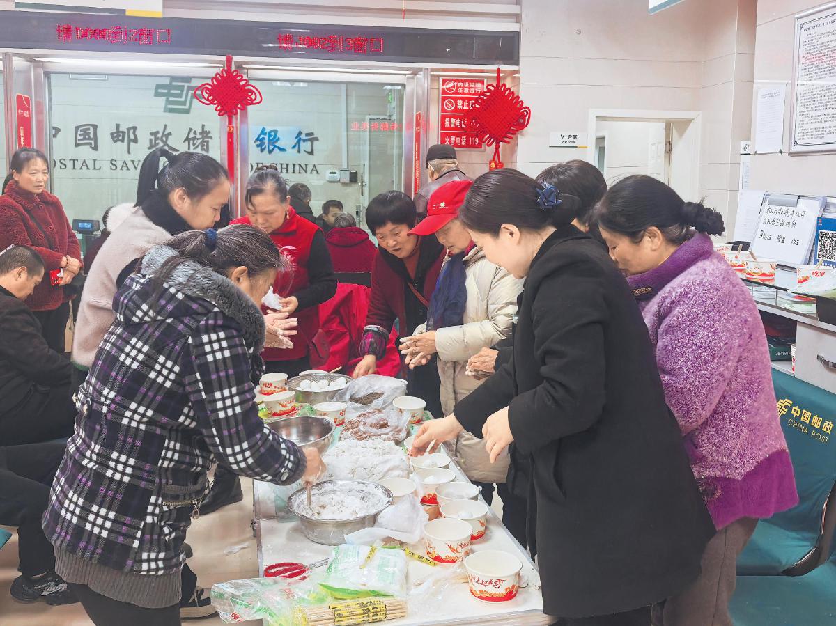 2月12日,四川省隆昌市郵政分公司各網(wǎng)點(diǎn)邀請(qǐng)客戶一起做湯圓,熱熱鬧鬧過(guò)大年??蛻魝儫崆楦邼q,紛紛挽起袖子大顯身手,與郵政員工一起搓湯圓,網(wǎng)點(diǎn)內(nèi)一片歡聲笑語(yǔ)。有的客戶現(xiàn)場(chǎng)品嘗親手制作的湯圓,有的客戶將湯圓打包帶回家,與家人一同分享節(jié)日的喜悅。□袁潞 攝影報(bào)道