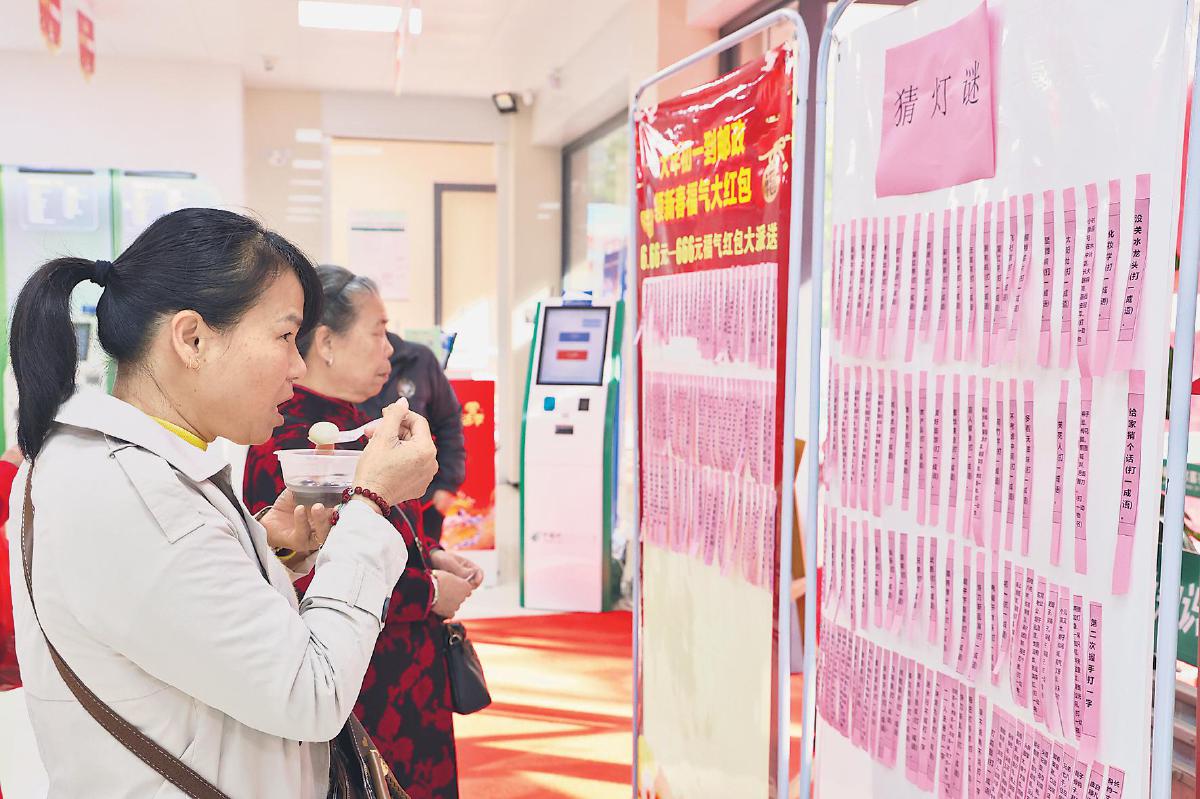 “謝謝你們!吃了這碗湯圓,渾身都熱乎了!”前來(lái)廣西壯族自治區(qū)貴港市郵政分公司和平路支局辦理業(yè)務(wù)的李阿姨對(duì)工作人員表示感謝。2月12日,正值元宵佳節(jié),貴港市分公司在各網(wǎng)點(diǎn)組織職工為客戶送上一碗碗熱氣騰騰的湯圓,還開(kāi)展了猜謎語(yǔ)等活動(dòng),為大家獻(xiàn)上團(tuán)圓、平安的美好祝福。一個(gè)個(gè)湯圓甜在嘴里、暖在心頭,客戶對(duì)郵政的愛(ài)心舉動(dòng)贊不絕口。□覃東新 攝影報(bào)道