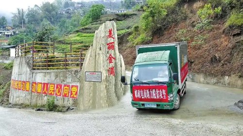 郵政運(yùn)輸車(chē)送貨進(jìn)村。