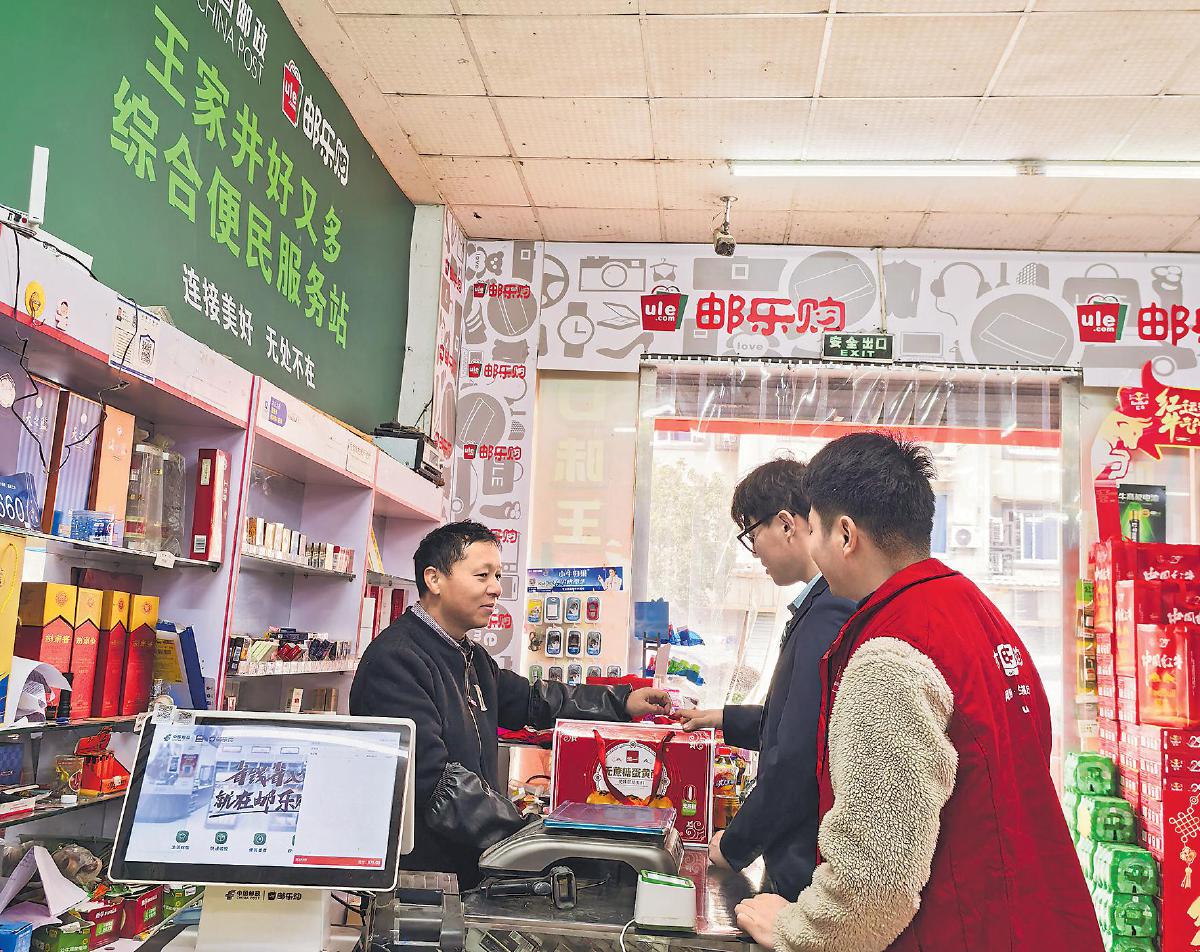 諸暨郵政網(wǎng)點(diǎn)管理人員在王家井好又多綜合便民服務(wù)站巡店,并與掌柜交流業(yè)務(wù)開(kāi)展情況。