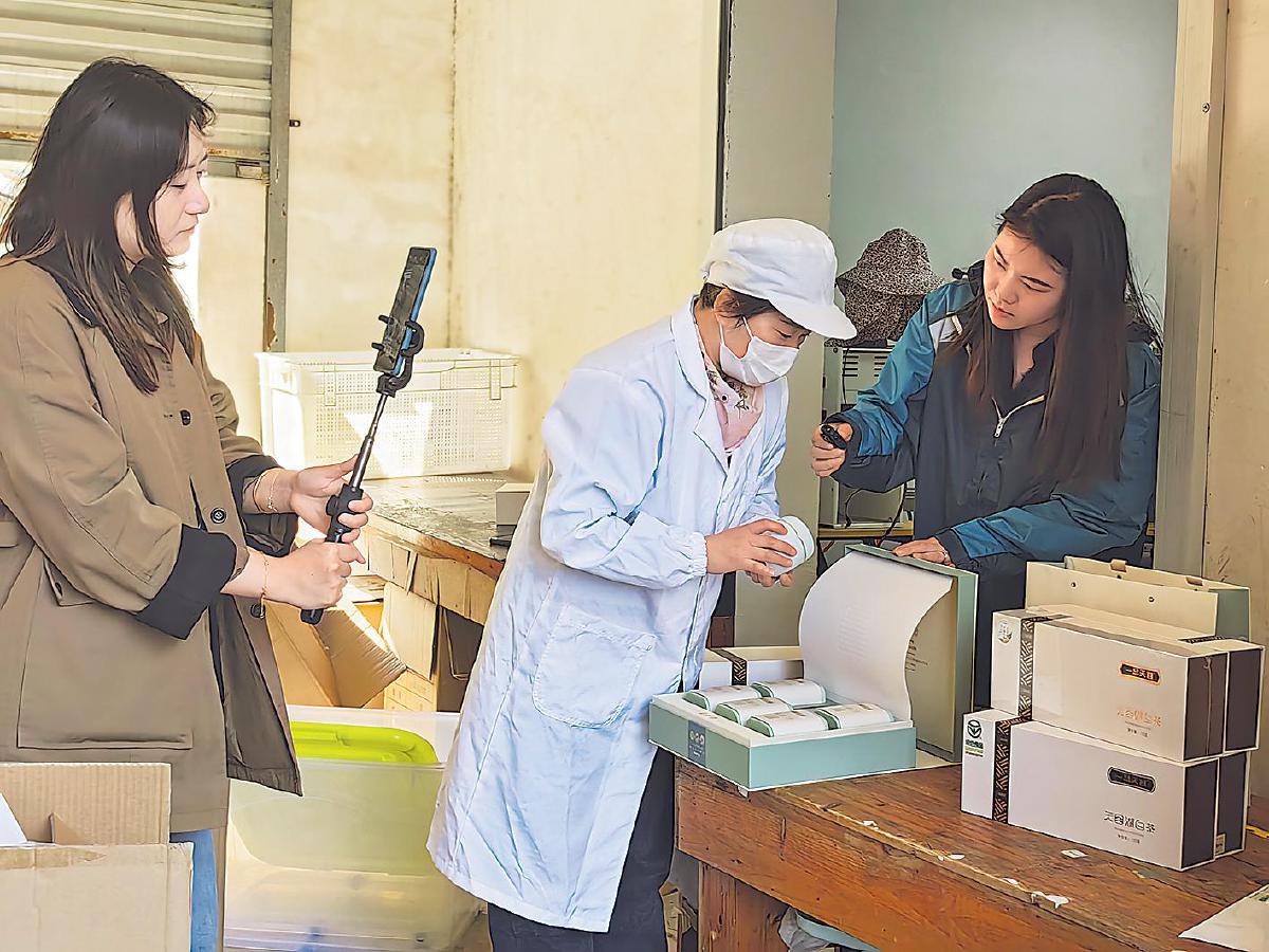 “她”力量是腳踏實(shí)地走好每一步。史秋蓉(右)是江蘇省溧陽(yáng)市郵政分公司農(nóng)產(chǎn)品助銷(xiāo)選品員。陽(yáng)春三月,溧陽(yáng)春茶吐翠,史秋蓉和同事一起走進(jìn)茶企,實(shí)地考察茶葉生態(tài)種植環(huán)境,免費(fèi)幫助茶場(chǎng)拍攝展示茶葉采摘、制作、包裝等全流程的宣傳視頻,擴(kuò)大春茶宣傳面,助力溧陽(yáng)春茶“走出去”。□查葉娟 攝影報(bào)道