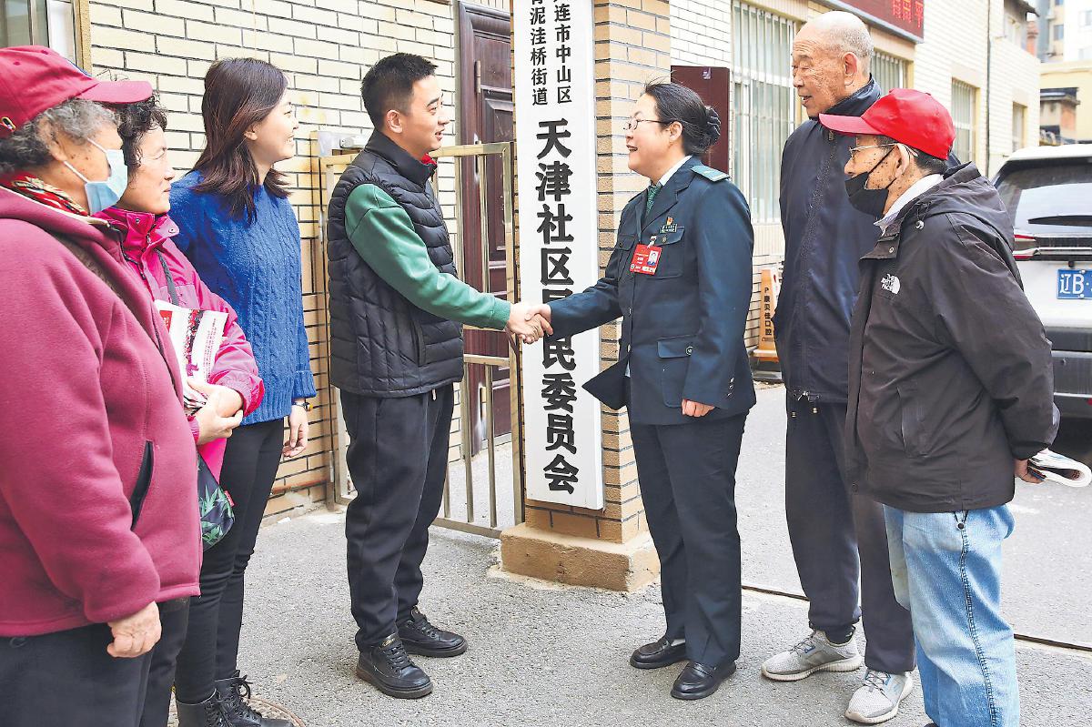 全國(guó)人大代表、遼寧省大連市中山區(qū)郵政分公司寄遞事業(yè)部勝利橋普郵營(yíng)業(yè)部站長(zhǎng)趙明枝第一時(shí)間來(lái)到社區(qū)進(jìn)行走訪,并向居民宣講全國(guó)兩會(huì)精神,與大家分享參會(huì)體會(huì)。 □亢俊杰 劉曉明 攝
