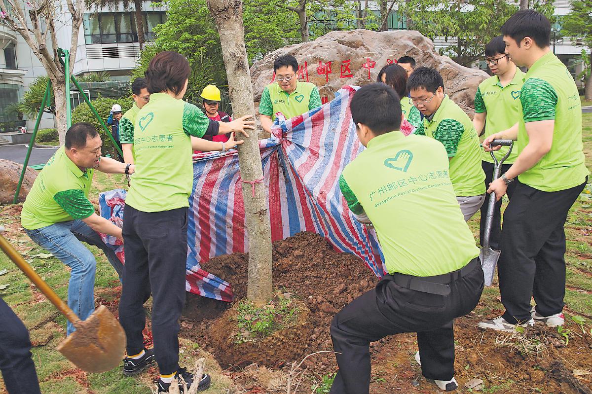 3月12日是第47個全民義務植樹節(jié),廣州郵區(qū)中心開展了義務植樹活動?;顒蝇F場,志愿者們熱情高漲,揮鍬鏟土、摘葉剪枝、扶樹培土、提桶澆水,大家團結協(xié)作、干勁十足。□陳原翰 陳緒民 攝影報道