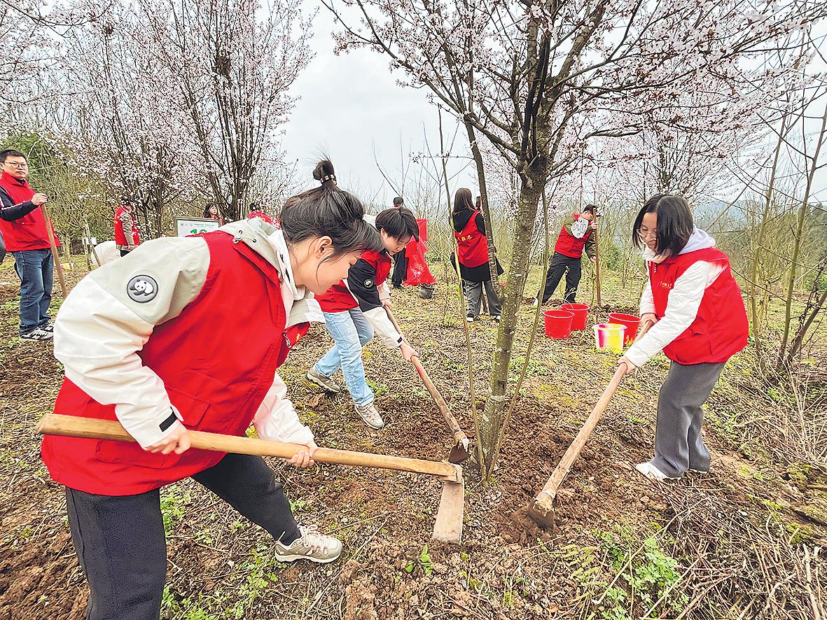 活動現場,“紅馬甲”個個熱情高漲。大家分工明確,配合默契,有的揮鍬鏟土,有的扶苗培土,有的提水澆灌,干勁滿滿。經過1小時的努力,大家共栽種枇杷樹苗12株。開展此次植樹活動,不僅為略陽增添了一抹清新綠意,美化了環(huán)境,也讓綠色發(fā)展理念深入人心,切實增強了大家的環(huán)保意識。□李潔 攝影報道