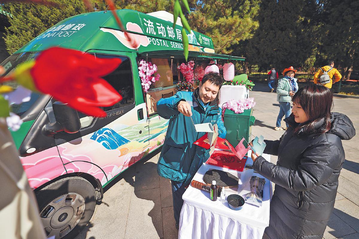 3月17日,“花開北京”2025北京郁金香文化節(jié)暨中山公園第30屆春花·郁金香文化節(jié)開幕。活動(dòng)期間,園內(nèi)首次推出郁金香主題文化市集,北京市郵政分公司以臨時(shí)郵局服務(wù)車為載體打造主題郵局品牌矩陣,通過展銷文創(chuàng)郵品參與這場(chǎng)春日盛會(huì),實(shí)現(xiàn)郵政文化與園林景觀的時(shí)空對(duì)話,為郁金香花海增添人文魅力。