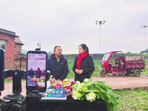 “這飛機還挺大。”“一架能裝多少?”循著周遭居民熱烈的議論聲抬頭望去:6架無人機接力飛行,將收砍的青菜頭從田間運送到路旁的郵車上。在這場涪陵片區(qū)郵政分公司與涪陵區(qū)農委組織的“涪陵青菜頭新鮮到家”主題助農惠民直播專場活動中,首次出動了無人機,通過“無人機運輸+網(wǎng)絡直播”,助力農產品快速出村進城。