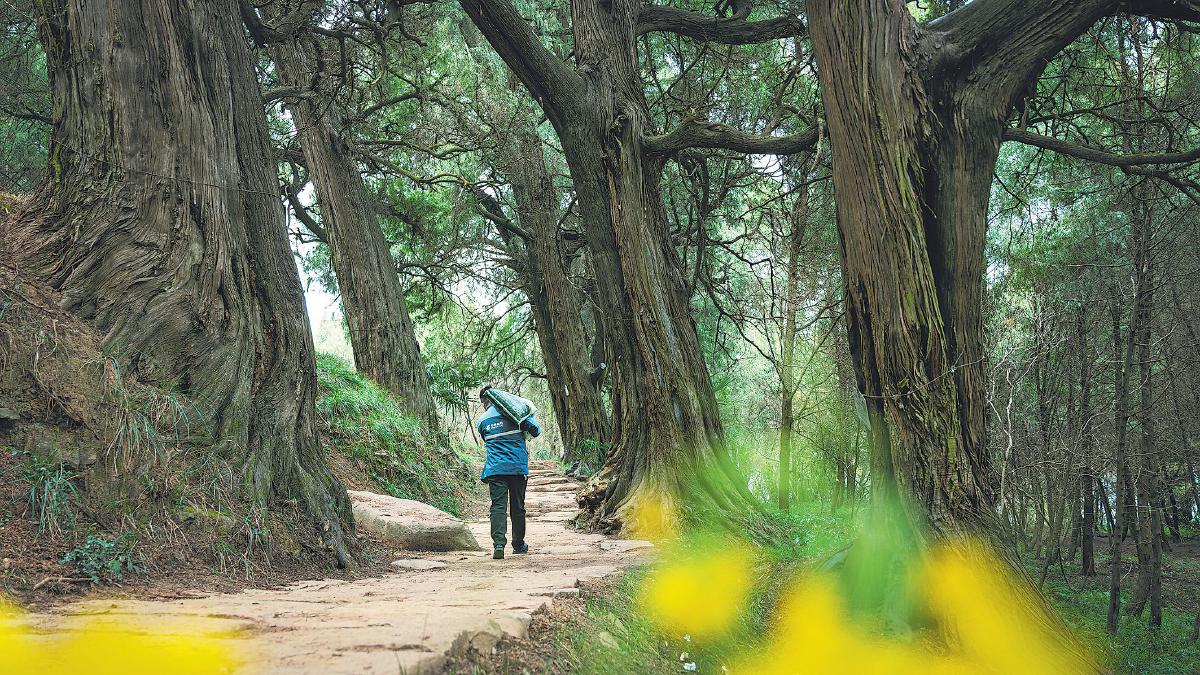 劍閣縣郵政分公司投遞員為龍源鎮(zhèn)的農(nóng)戶送肥料,途中經(jīng)過蜀道古柏群。□張平 攝