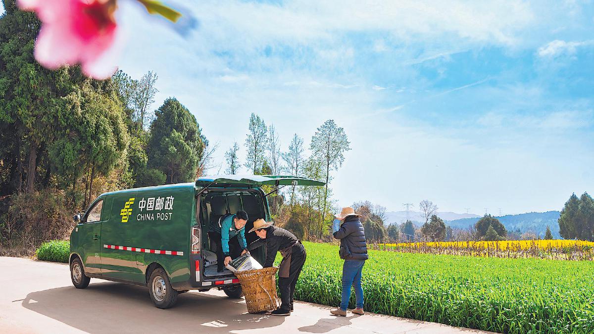 一輛輛綠色的郵車穿梭在鄉(xiāng)村小道,將種子、化肥、農(nóng)藥等農(nóng)資送到農(nóng)戶手中,確保不誤農(nóng)時。同時,四川郵政還聯(lián)合郵儲銀行四川省分行全力提供金融支持,為資金短缺的農(nóng)戶破解融資難題,幫助他們順利開展春耕生產(chǎn),確保今年再奪大豐收。