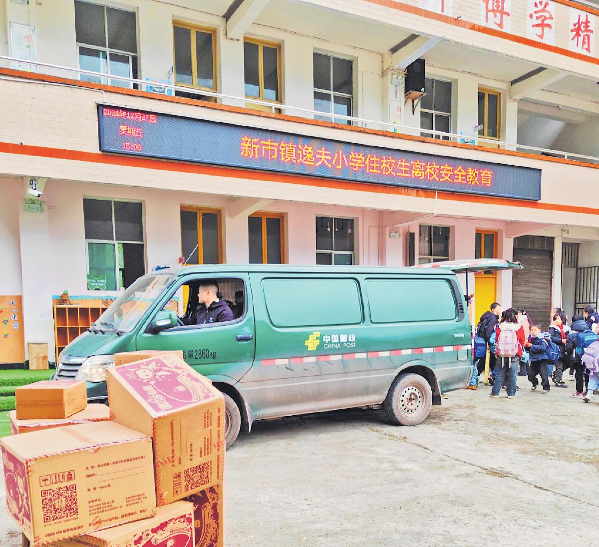 2024年末,郵車(chē)為宜賓市屏山縣新市鎮(zhèn)逸夫小學(xué)學(xué)生送去愛(ài)心包裹?!?/p>