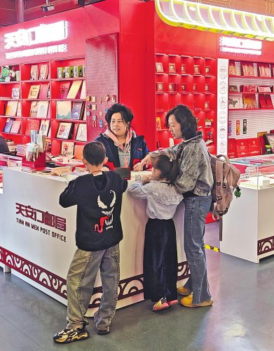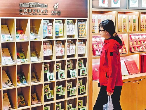 中國國家博物館主題郵局內(nèi)陳列著以國博館藏為靈感的豐富郵品,游客可以用不同文物主題的郵戳蓋章留念,感受集郵文化的獨特魅力。