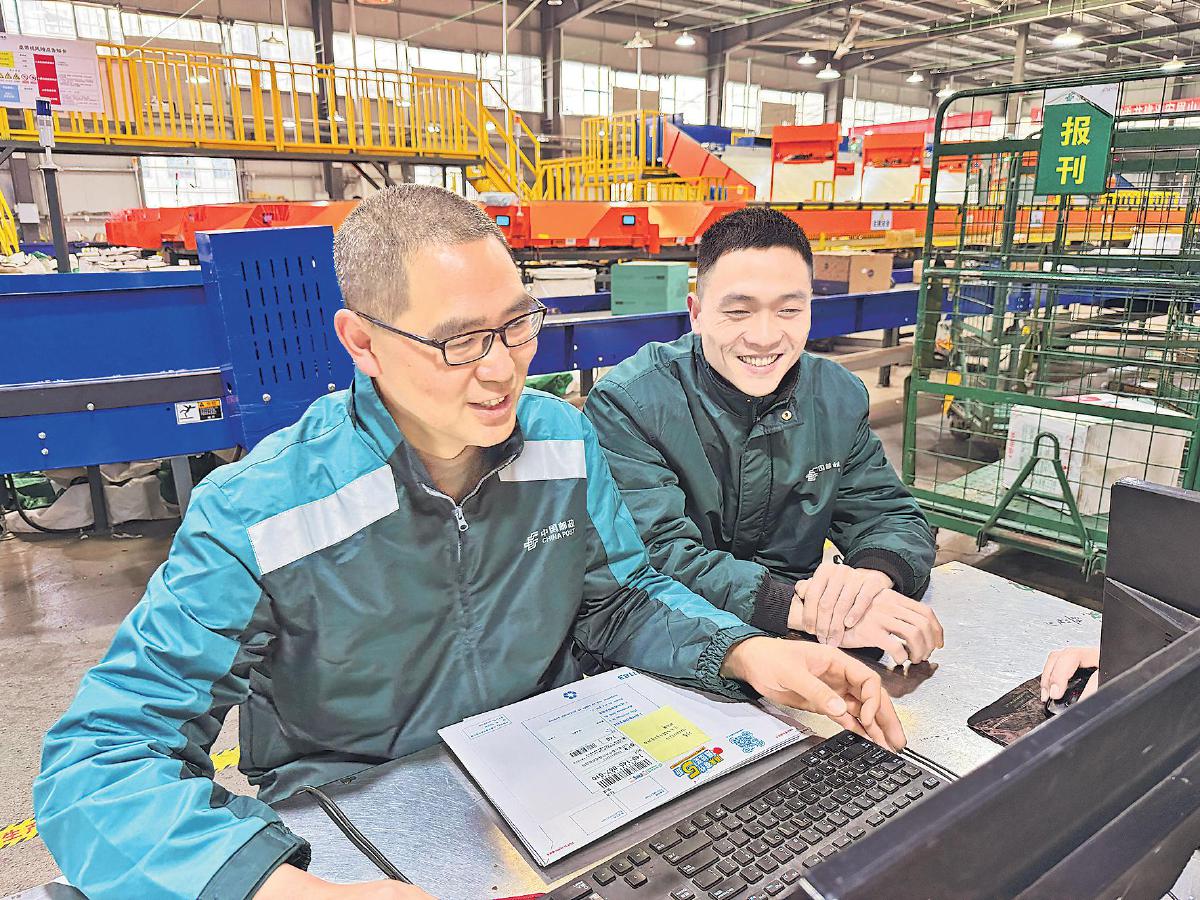 為驗證想法的可行性,邱文波利用休息時間和同事一起調(diào)整傳送帶的分發(fā)程序設(shè)置,并在傳送帶兩側(cè)設(shè)置分揀區(qū)域,一邊是城區(qū)郵件分揀區(qū),另一邊是鄉(xiāng)鎮(zhèn)郵件的暫存區(qū)。兩周后,原本需要5名分揀員協(xié)作的工作,3人即可完成,效率提升近40%。“以前分揀城區(qū)、鄉(xiāng)鎮(zhèn)的包裹需要很長時間,現(xiàn)在重新調(diào)整了分揀流程,不僅分揀效率提高了,后續(xù)鄉(xiāng)郵封發(fā)組的工作也輕松了?!必?fù)責(zé)封發(fā)的何靜波感慨道。