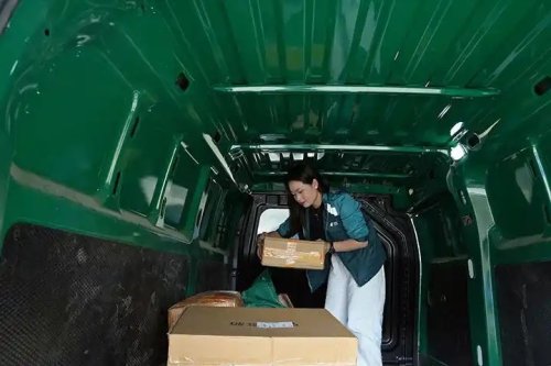 新能源汽車(chē)派送包裹。楊英攝