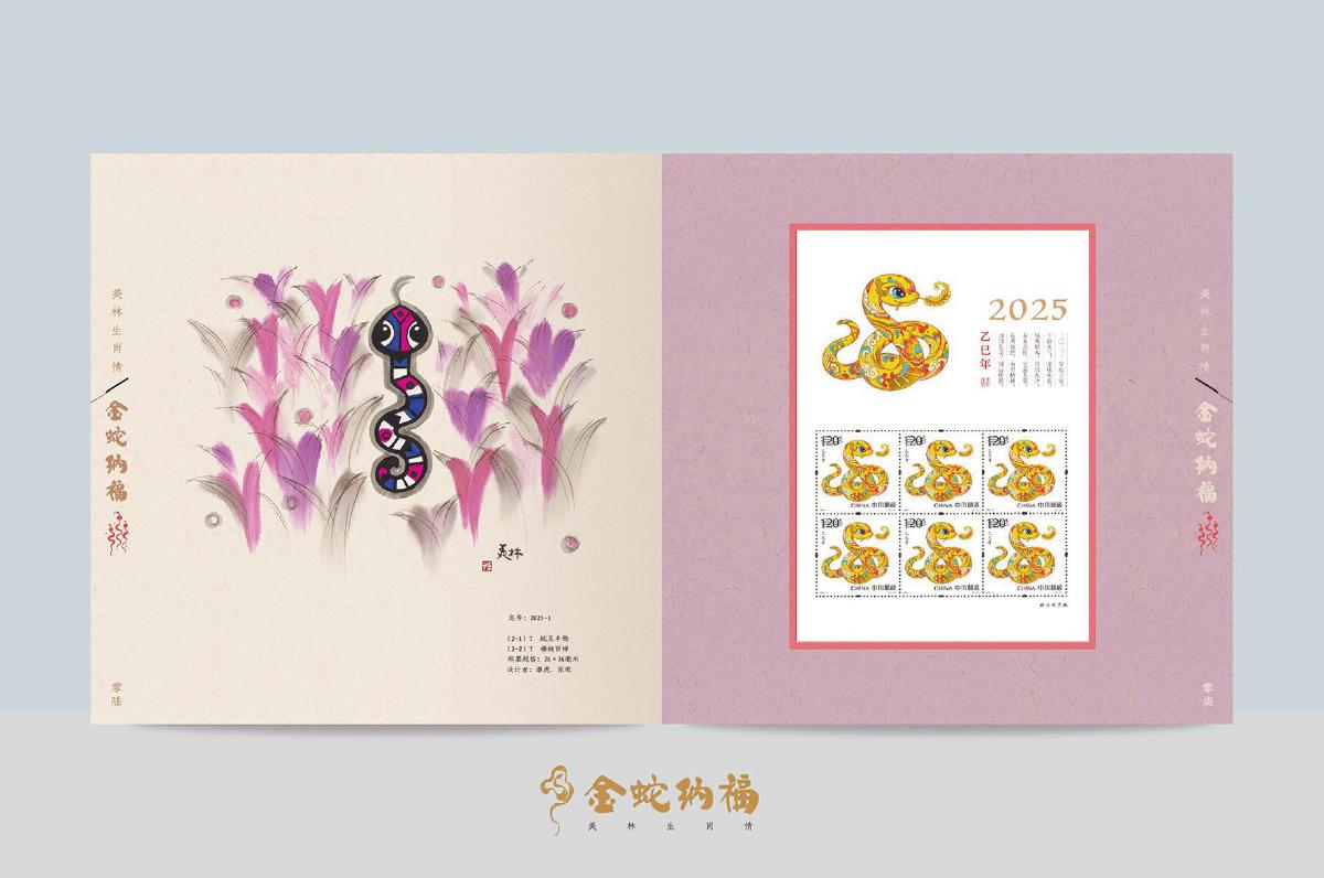 2020年,《美林生肖情》系列產(chǎn)品第一套《美林生肖情——庚子年》正式推出,在方寸間構(gòu)建起一座“移動的韓美林美術(shù)館”,吸引了無數(shù)郵迷及書畫愛好者追捧。結(jié)合該項目產(chǎn)品之間具有關(guān)聯(lián)性和延續(xù)性的特點,常州市分公司除了在配票上進(jìn)行甄選,還積極爭取生肖票品資源,郵冊中設(shè)置的個性化郵品及文創(chuàng)產(chǎn)品也讓客戶收獲驚喜。該系列的虎年郵冊使用“中國結(jié)”個性化主圖虎形象個性化郵票1版,兔年郵冊則設(shè)計韓美林極限明信片4枚,龍年郵冊隨冊為購買者贈送1克金條,一經(jīng)推出即售罄。在今年推出的《美林生肖情——金蛇納?!飞吣赅]冊中,除配有第一至第四輪生肖蛇郵票外,還選取了T106熊貓?zhí)灼薄ⅰ都汉ツ辍贰陡幽辍返榷嗵子身n美林設(shè)計的動物郵票。郵冊內(nèi)頁中,一幅幅韓美林創(chuàng)作的蛇形象經(jīng)典藝術(shù)作品與郵票相映成趣。該產(chǎn)品限量定制2000本,在江蘇全省范圍內(nèi)發(fā)行,常州集郵網(wǎng)廳限時上架包郵,一時間成為新年“搶手貨”。該項目負(fù)責(zé)人表示:“郵票在方寸間凝練地展現(xiàn)了中華優(yōu)秀傳統(tǒng)文化之精髓。我們希望通過這本郵冊,讓更多人愛上集郵,以實際行動推動文化繁榮,為優(yōu)秀傳統(tǒng)文化的記載與傳承作出貢獻(xiàn)?!?/p>