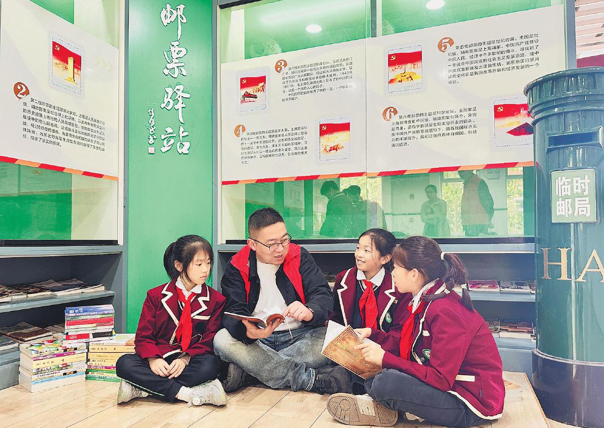 4月22日,江蘇省海安市郵政分公司走進(jìn)城南實(shí)驗(yàn)小學(xué)“郵票驛站”,開展全民閱讀圖書校園巡展活動(dòng)。活動(dòng)現(xiàn)場,同學(xué)們與郵政志愿者共讀集郵圖書,學(xué)習(xí)郵票知識?! 蹴f雅琴 攝影報(bào)道