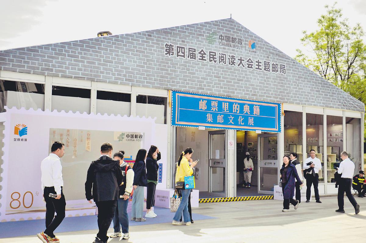 4月23日至27日,由中央宣傳部和山西省委、省政府主辦的第四屆全民閱讀大會(huì)在太原舉辦。山西省郵政分公司舉辦了《郵票里的典籍》專題集郵文化展覽,并啟用“第四屆全民閱讀大會(huì)”文化日戳1枚。太原市郵政分公司在活動(dòng)現(xiàn)場設(shè)立臨時(shí)主題郵局,集中展示各類暢銷報(bào)刊及集郵文創(chuàng)產(chǎn)品,并免費(fèi)提供“第四屆全民閱讀大會(huì)”文化日戳和幾十枚地方名勝風(fēng)光打卡章戳的加蓋服務(wù)?!跷鋪喠痢⊥蹩∏濉罴巍z影報(bào)道