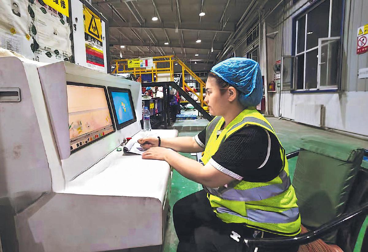 從5月底開始,新疆維吾爾自治區(qū)和田地區(qū)迎來一波快遞高峰。和田地區(qū)郵政分公司新增30名作業(yè)人員,后臺行政工作人員隨時支援一線生產(chǎn);新增5輛運(yùn)輸車,加密農(nóng)村配送網(wǎng)絡(luò);254個格口的自動分揀機(jī)全速運(yùn)轉(zhuǎn),包裹日處理能力達(dá)12萬件。圖為郵政工作人員通過安檢設(shè)備對進(jìn)口郵件進(jìn)行安檢。
