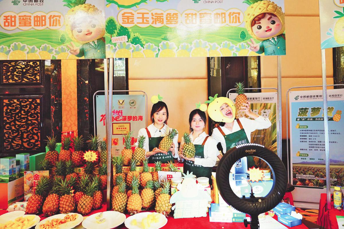 4月10日,湛江市分公司聯(lián)合徐聞縣政府、湛江市農(nóng)業(yè)農(nóng)村局、國(guó)家金融監(jiān)督管理總局湛江監(jiān)管分局、湛江市郵政管理局等單位,在徐聞舉辦了以“紅土育菠蘿,產(chǎn)業(yè)促振興”為主題的2025徐聞菠蘿(鳳梨)推介會(huì)。徐聞縣分公司與重慶果批市場(chǎng)、新疆維吾爾自治區(qū)郵政分公司、新疆紅星農(nóng)場(chǎng)等簽訂了采購(gòu)意向書,采購(gòu)金額達(dá)500萬元。
