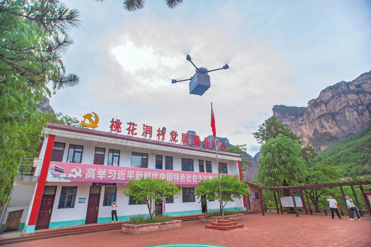 無人機(jī)抵達(dá)上坪村低空物流驛站。