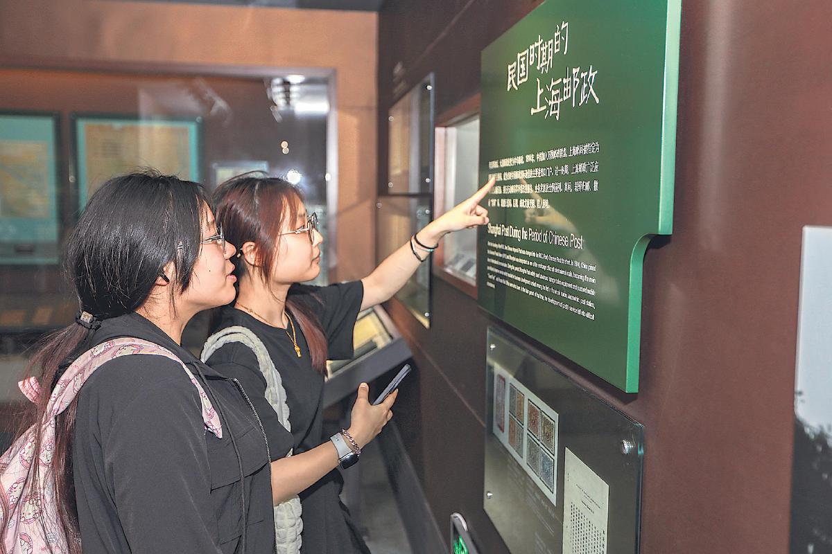 上海工商職業(yè)技術(shù)學(xué)院學(xué)生認真參觀上海郵政博物館展覽。
