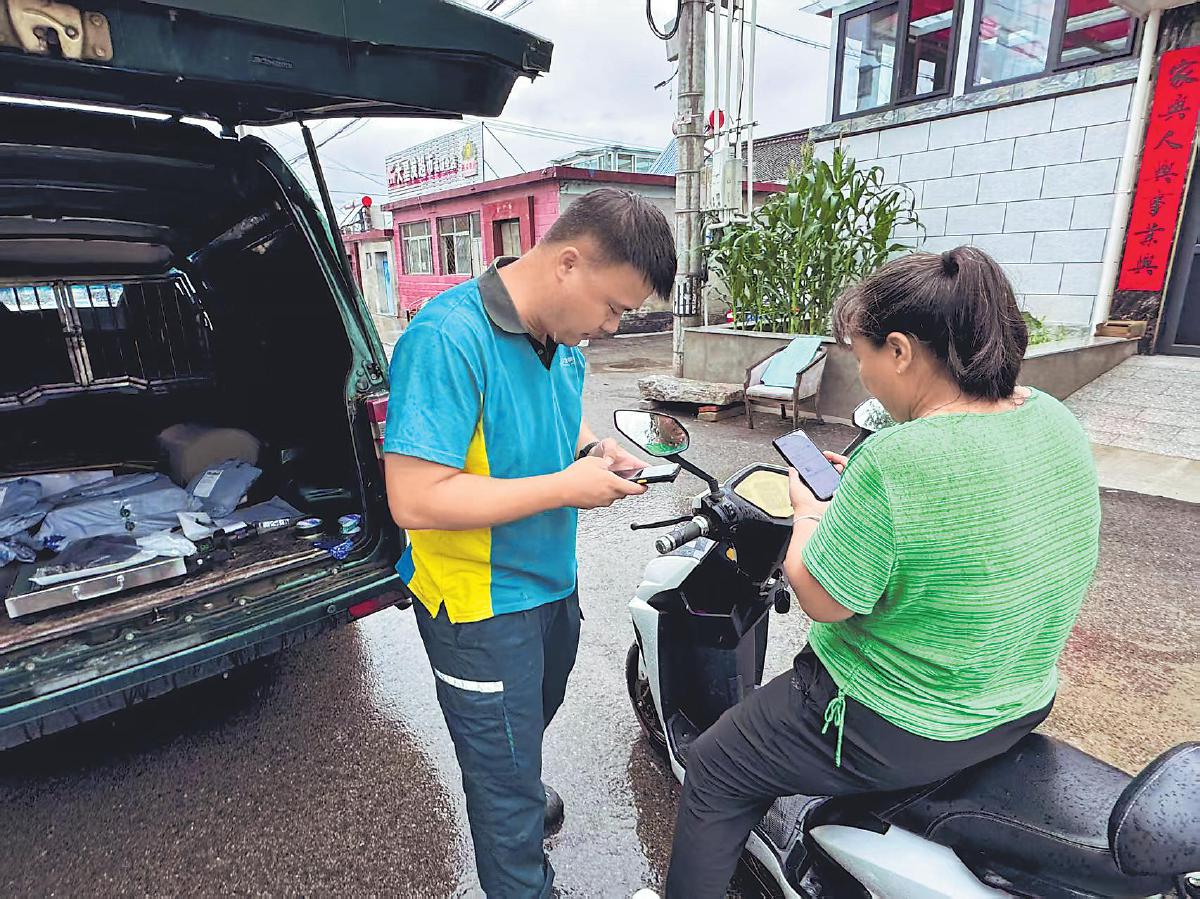 暴雨剛停,北京郵政的投遞員就開車進村,及時為村民投遞郵件。 □丁強 攝