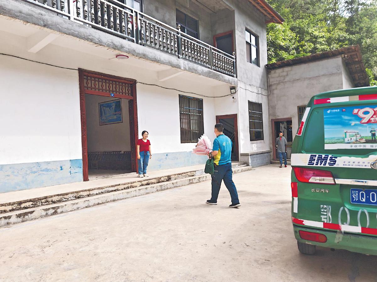 盛夏時節(jié),湖北省恩施土家族苗族自治州青果山村,蒼翠的群山中,一輛郵車穿梭其間。行駛將近1小時,隨著郵車再次轉(zhuǎn)過一個急彎、進入一處山坳,一排盛放的木槿花旁,一座雙層民居映入眼簾。郵政投遞員張安兵踩下剎車,拿起裝著武漢大學錄取通知書的郵件,捧著一束鮮花從車上走下。