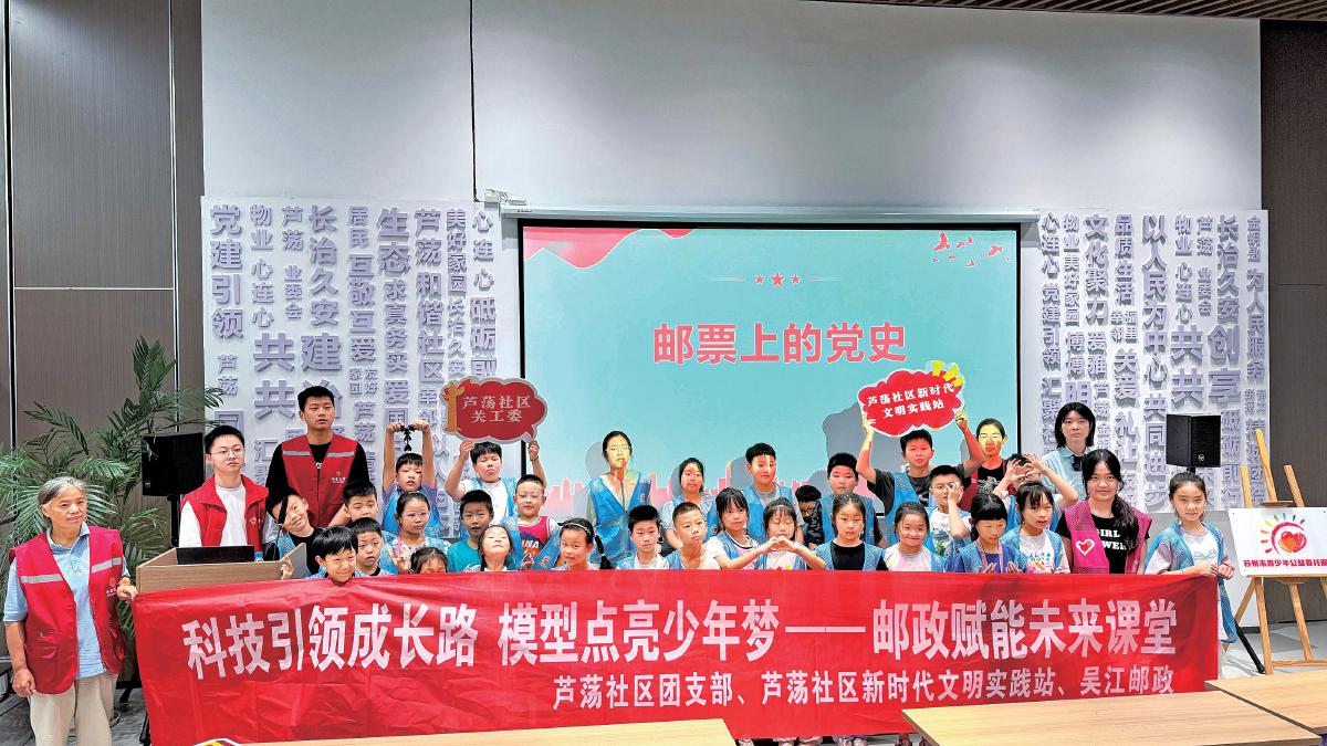 吳江郵政的黨員志愿者通過一枚枚珍貴的郵票,向社區(qū)的青少年們講述了中國共產(chǎn)黨從誕生到進(jìn)行革命斗爭再到蓬勃發(fā)展的偉大歷程。