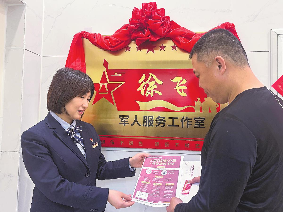 2023年4月,“徐飛軍人服務(wù)工作室”正式成立,旨在為現(xiàn)役軍人、退役軍人及其家屬提供“專屬、優(yōu)先、優(yōu)質(zhì)”的金融服務(wù)?!拔覀兿M尙F(xiàn)役軍人、退役軍人及其家屬能夠享受到更加優(yōu)質(zhì)、高效、便捷的金融服務(wù),為他們解除后顧之憂,讓他們?cè)诮?jīng)濟(jì)生活中也能感受到國(guó)家和社會(huì)的關(guān)懷與尊重?!毙祜w說(shuō)。