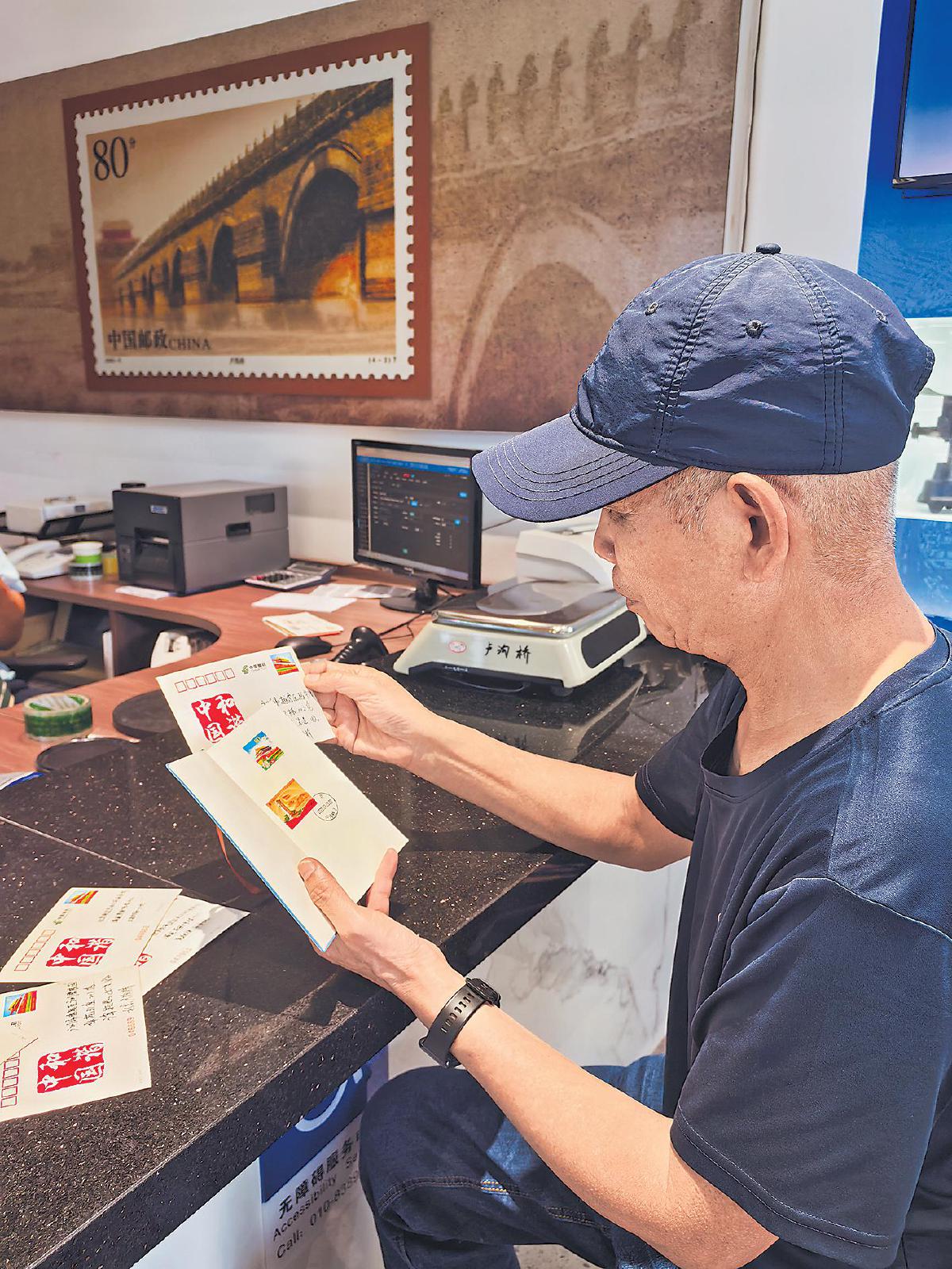 市民來到北京市豐臺區(qū)盧溝橋郵政所加蓋日戳。□馬力軍 攝影報道