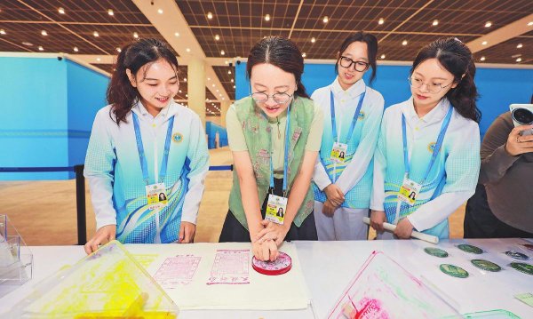天津郵政充分發(fā)揮自身文化屬性,聚焦“傳統(tǒng)文化、大國外交、魅力天津”三大主題,結(jié)合天津城市特色,推出45款彰顯天津文化和郵政文化的郵品。同時,天津郵政設(shè)置郵品互動體驗區(qū),展出中國首套郵票——大龍郵票。媒體記者和工作人員在欣賞郵票珍品的同時,還能體驗大龍郵票拓印制作過程(見圖),更加深刻感受到中國郵政的歷史厚重感以及天津的文化底蘊。