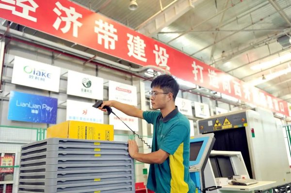 在新疆霍爾果斯國際郵件交換站,中國郵政工作人員(右一)在為即將交換到哈薩克斯坦郵政的郵包掃碼轉(zhuǎn)運。據(jù)了解,霍爾果斯國際郵件交換站于2022年7月正式運營,以進出口物流渠道為支持,為跨境電商產(chǎn)業(yè)鏈上下游提供倉儲和快遞物流綜合解決方案。承運中國至中亞多國、俄羅斯以及歐洲國家的出口國際郵件。3年來,累計國際郵件交換量2026噸(9月11日攝)。新華社記者 李賀 攝