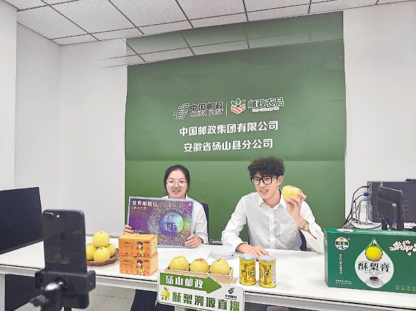 10月9日,安徽省碭山縣郵政分公司緊扣碭山酥梨特色農(nóng)業(yè)產(chǎn)業(yè),開展“鄉(xiāng)村振興 郵我助力”世界郵政日主題直播活動。在直播間,主播重點展示了郵政為酥梨產(chǎn)業(yè)量身打造的源頭品控、專業(yè)包裝、冷鏈運輸?shù)纫惑w化服務(wù)方案,彰顯郵政有效助力地方經(jīng)濟發(fā)展、服務(wù)鄉(xiāng)村振興的新作為?! 醴亢榱帷z影報道