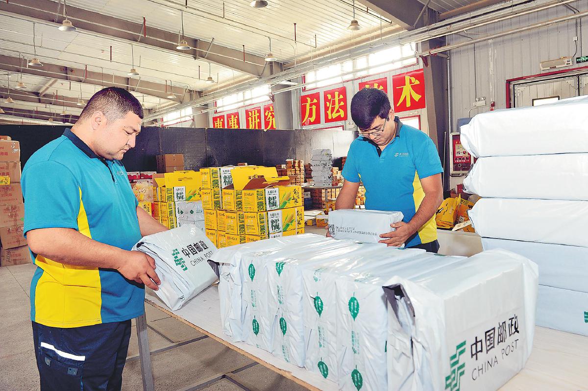葉城縣是古絲綢之路上的南道重鎮(zhèn)。提起當(dāng)?shù)氐目蛻羟闆r,麥麥提艾力·吾布力如數(shù)家珍?!爸谐橇愎锲瑓^(qū)的居民習(xí)慣于早間收件,城東干果市場的商戶下午發(fā)貨最集中,電商園的9家客戶每單包裹都要貼‘易碎’標(biāo)簽……”