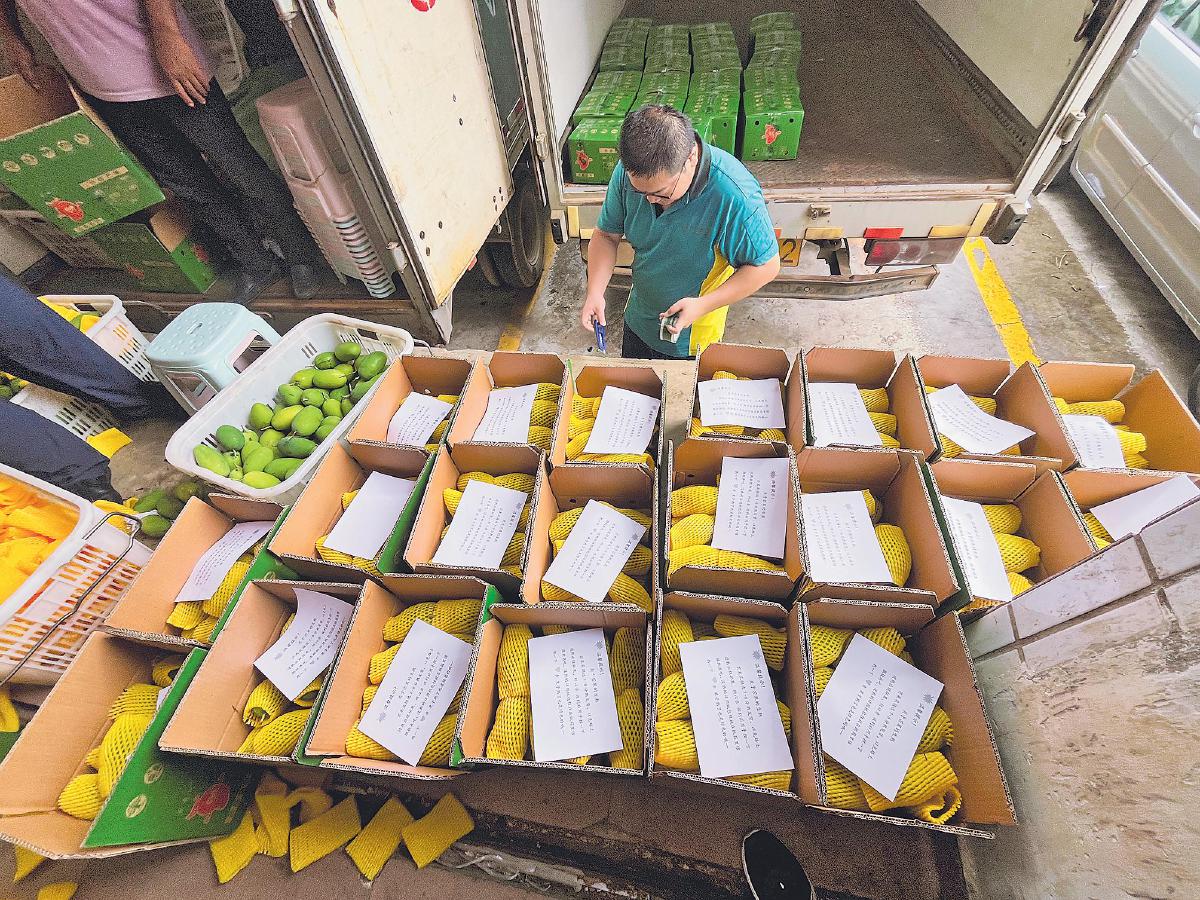 芒果剛采摘下來就被裝入郵車運(yùn)走。