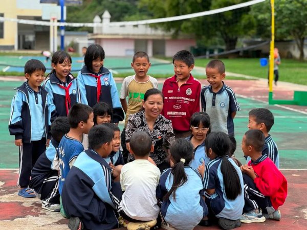 郭玉琴與老滿坡完全小學(xué)的孩子們親切交流