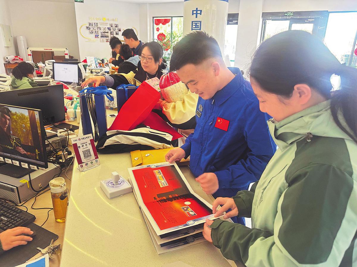 10月31日,搭載神舟二十一號(hào)載人飛船的長(zhǎng)征二號(hào)F遙二十一運(yùn)載火箭在甘肅酒泉衛(wèi)星發(fā)射中心成功發(fā)射。為記錄中國(guó)航天事業(yè)的輝煌成就,酒泉市郵政分公司推出“2025筑夢(mèng)太空”系列郵品,既具有航天發(fā)射的紀(jì)念意義,又兼顧集郵愛好者關(guān)注的收藏價(jià)值,受到各界的歡迎。圖為在酒泉航天主題郵局,客戶們踴躍選購(gòu)航天郵品。
