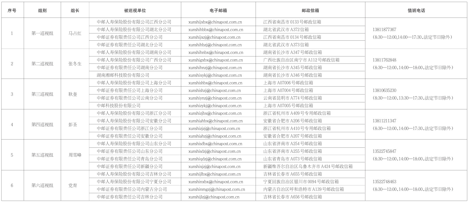 中國郵政集團(tuán)有限公司黨組2025年第二批巡視進(jìn)駐信息一覽表