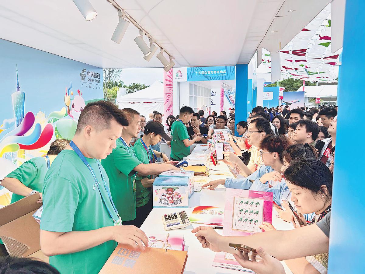 目前,全運(yùn)郵局也在廣東各個(gè)比賽城市全面亮相。廣州市分公司布局地鐵“全運(yùn)快閃郵局”4個(gè)、永慶坊“乒乓快閃郵局”1個(gè)、中華廣場(chǎng)“全運(yùn)快閃郵局”1個(gè)、小石集“快閃郵局”1個(gè),覆蓋了廣州市內(nèi)重點(diǎn)商圈、地鐵樞紐等重要客流區(qū)域。深圳市郵政分公司在十五運(yùn)會(huì)群眾比賽羽毛球項(xiàng)目的比賽現(xiàn)場(chǎng)設(shè)立了全運(yùn)郵局。在郵局內(nèi),“有聲明信片”成為人氣焦點(diǎn)。人們現(xiàn)場(chǎng)打印賽事照片明信片,并錄入語音祝福加蓋專屬紀(jì)念戳。一位來自外地的觀賽者感慨道:“為觀看這場(chǎng)賽事特意跨越千里趕來,這份全運(yùn)記憶既溫暖又有意義。”中山市郵政分公司陸續(xù)在全市7個(gè)官方特許商品零售店設(shè)立全運(yùn)郵局,推出十五運(yùn)會(huì)吉祥物和特色產(chǎn)品、紀(jì)念戳卡及蓋章服務(wù)。十五運(yùn)會(huì)群眾賽事期間,中山郵政還進(jìn)駐比賽場(chǎng)館和酒店,為運(yùn)動(dòng)員與群眾提供便捷服務(wù)?;葜菔朽]政分公司在比賽場(chǎng)館設(shè)立全運(yùn)郵局及“運(yùn)動(dòng)健將郵筒”,開展“為健兒寄祝?!泵餍牌]寄活動(dòng)、“激情全運(yùn) 戳記精彩”集戳活動(dòng),將祝福傳遞給更多運(yùn)動(dòng)員。東莞市郵政分公司在多個(gè)商圈開設(shè)全運(yùn)郵局,并在全市設(shè)置了6個(gè)可購買十五運(yùn)會(huì)吉祥物的網(wǎng)點(diǎn),與市民共度全運(yùn)會(huì)嘉年華。東莞郵政同步開展“戳記精彩”集戳活動(dòng),提供賽事主題紀(jì)念戳、運(yùn)動(dòng)項(xiàng)目紀(jì)念戳等。