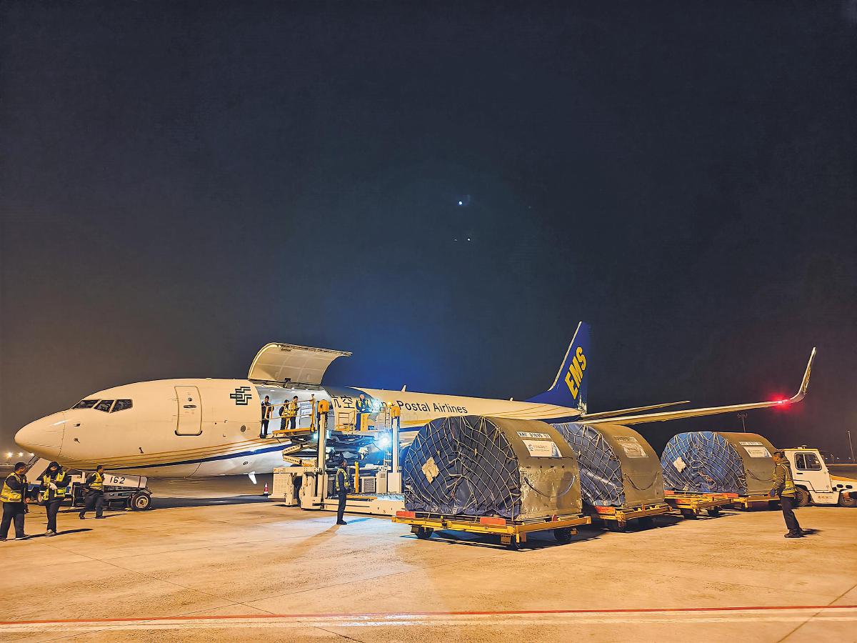 包裹從內(nèi)蒙古搭乘郵政航空貨運專機經(jīng)轉(zhuǎn)南京集散中心奔赴上海。