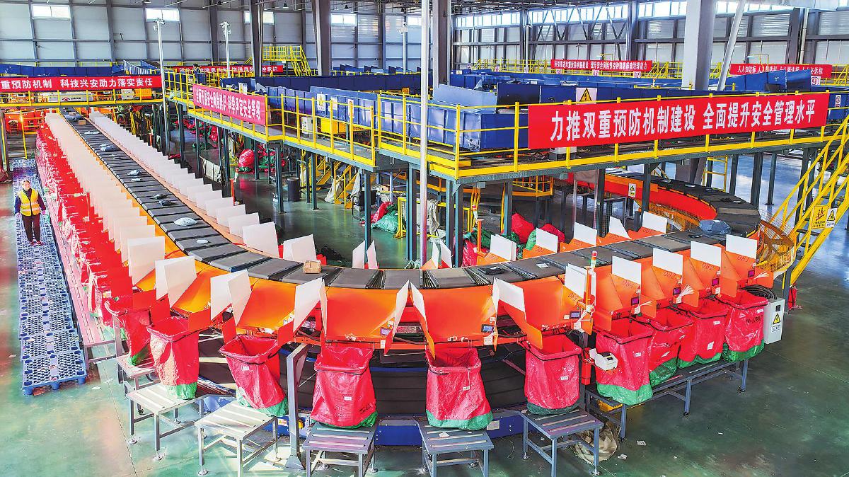 基礎(chǔ)設(shè)施迭代升級(jí),處理能力大幅提升。為滿(mǎn)足日益增長(zhǎng)的郵件處理需求,輝縣郵政投資超1800萬(wàn)元將縣級(jí)處理中心升級(jí)為共配中心。升級(jí)后的中心,最引人注目的是164格口自動(dòng)分揀機(jī)——包裹通過(guò)傳送帶進(jìn)入分揀機(jī)后,系統(tǒng)會(huì)自動(dòng)識(shí)別快遞面單上的地址信息,將包裹分配到對(duì)應(yīng)鄉(xiāng)鎮(zhèn)的格口,整個(gè)過(guò)程無(wú)須人工干預(yù)。該中心分揀員郭杰說(shuō),分揀效率的提升,讓投遞員出班時(shí)間提前了約40分鐘。