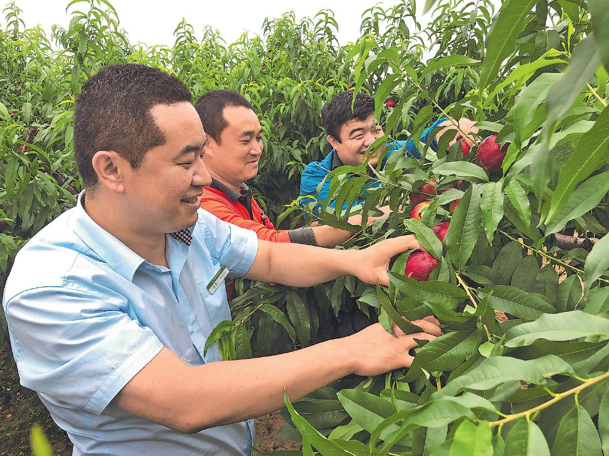 在天水市秦州區(qū)中梁鎮(zhèn)三灣村,郵政工作人員幫果農采摘花牛蘋果。
